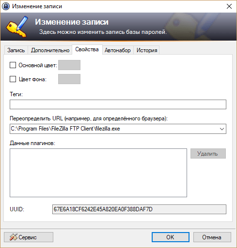 Для того, чтобы по нажатию горячих клавиш (Ctrl+Alt+U) или соответствующей кнопки в KeePass открывался FTP-клиент FileZilla, нужно задать полный путь к исполняемому файлу программы: