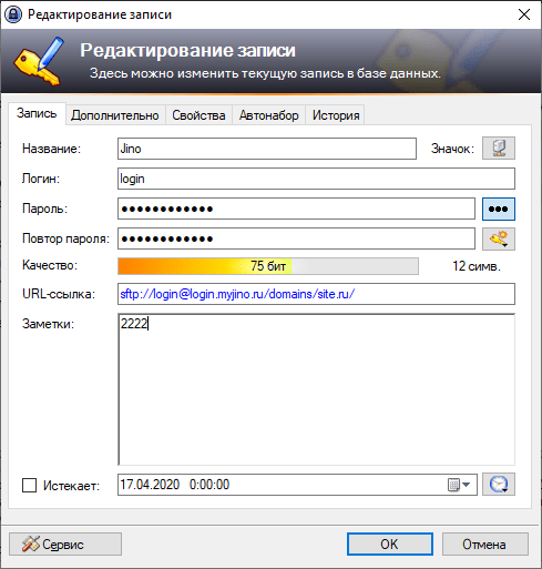 - Выбрать созданную запись в KeePaas, затем открыть FileZilla и произвести автонабор с помощью горячих клавиш (в моём случае - Ctrl+Alt+Y)