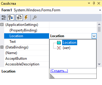 | Location | System.Drawing.Point | Пользователь | 50; 50 |